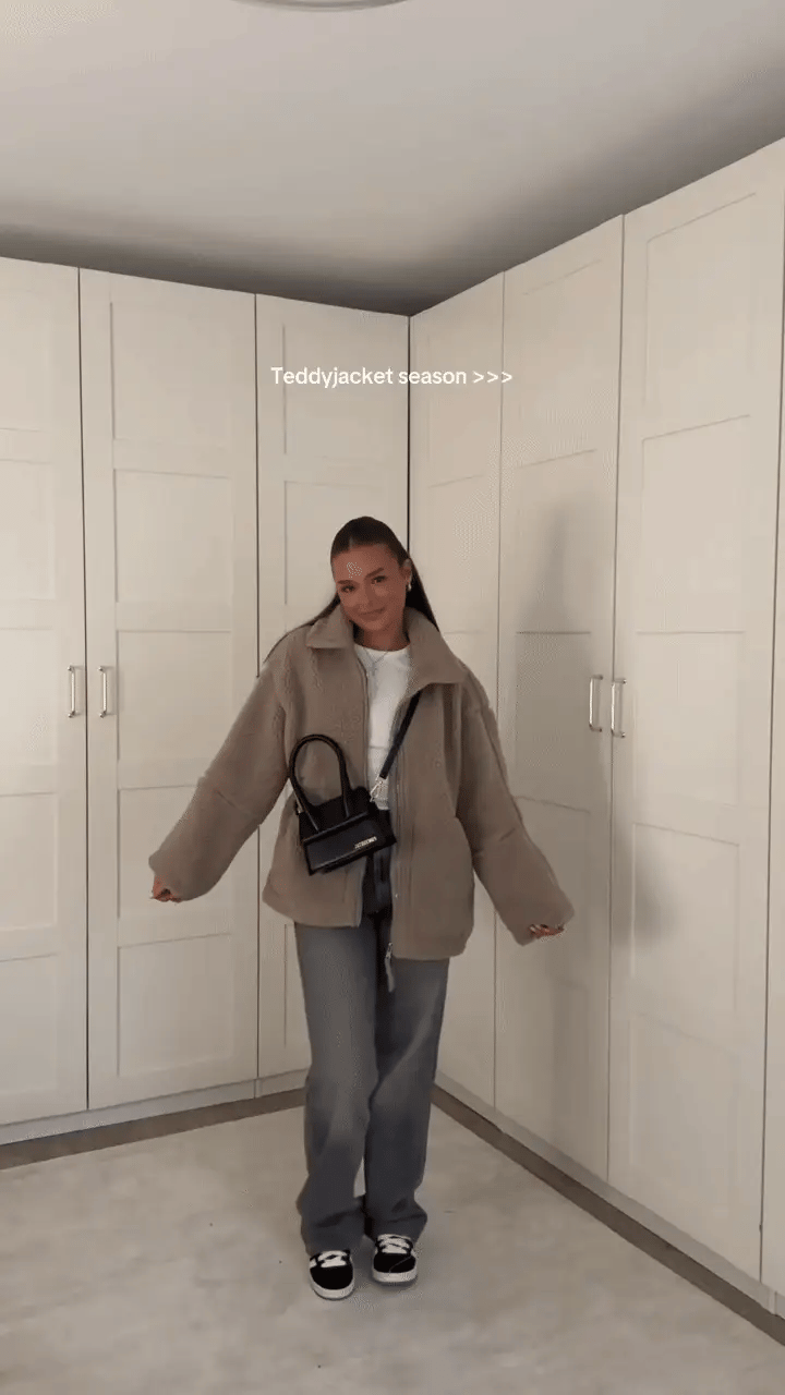 Confeccionado en un tejido tipo teddy de textura ultrasuave y corte de longitud media, ofrece un look elegante sin renunciar a la comodidad.